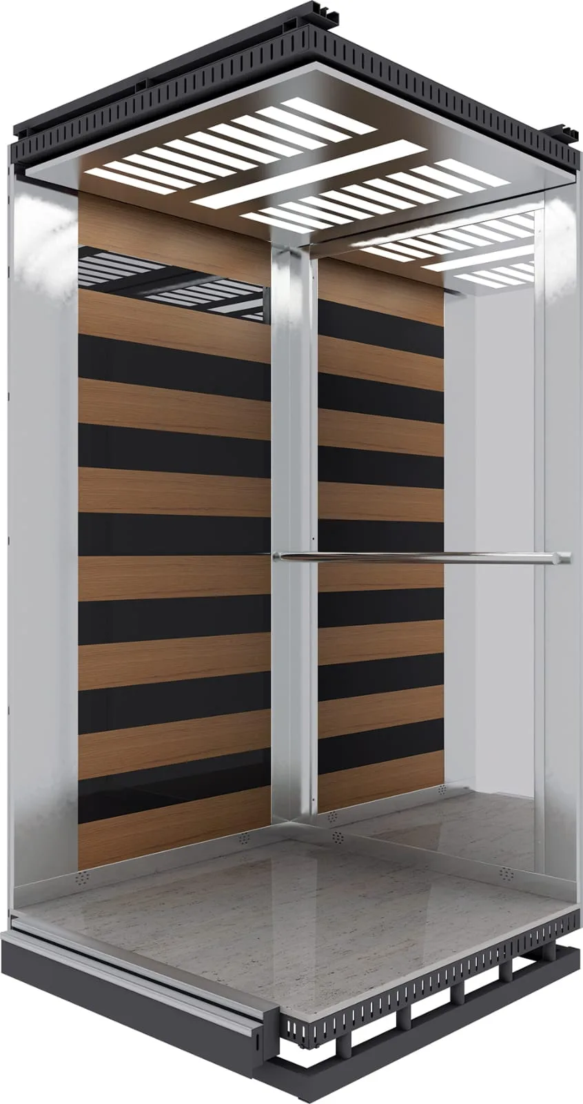 نحن نوفر خدمة تصميم مخصصة ومتميزة لكبائن المصاعد مما يمنح العملاء الفرصة لإنشاء كبائن ذات طابع خاص وأنيق.